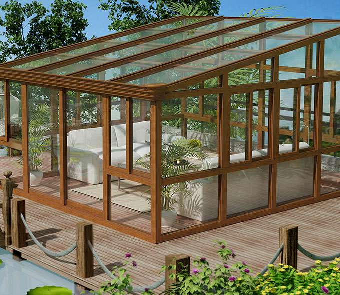 铝合金结构专有断桥隔热保温专利技术,结合Low-E玻璃传热系数低和反射红外线的特点,打造一座环保的阳光房。