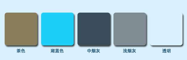 耐力板可选颜色(可定制其他颜色):中烟灰、 浅烟灰、 茶色、 湖蓝色、 透明